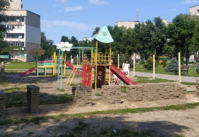 Неподалік місця, де нині тривають роботи, на дитячому майданчику граються діти. Одна з мам Наталія Шульгачик каже: деякі елементи гойдалок на майданчику необхідно лагодити. "Треба дивитися за донькою, щоб ніде не впала, бо вже деякі качелі поламані, немає сходинок", – розповідає жінка.