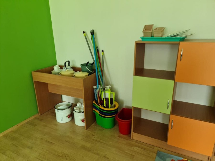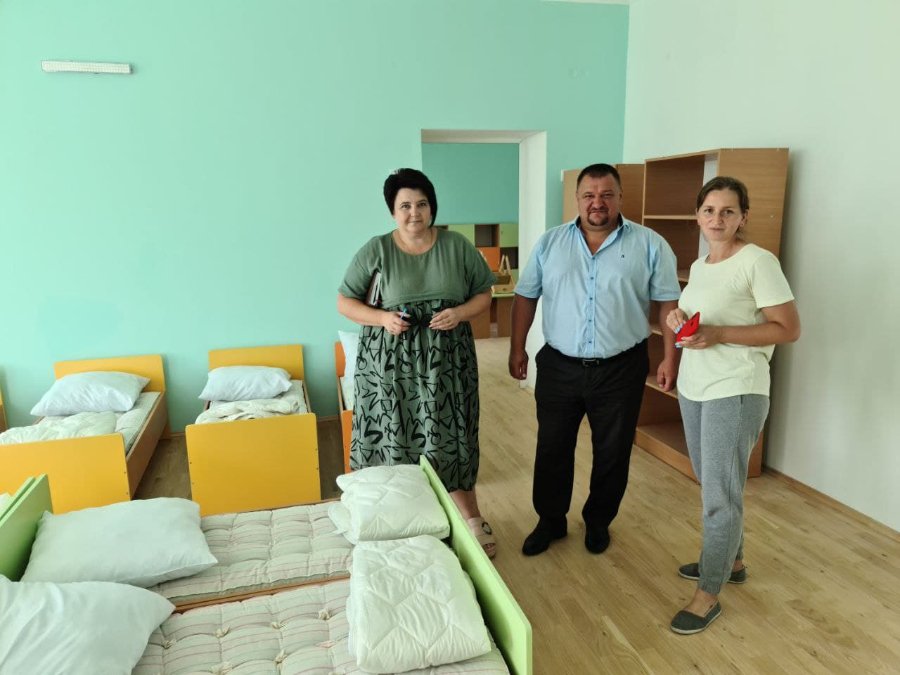 У кімнатах розставляють меблі, у спальнях – ліжечка. Придбали нову постіль, рушники, посуд, різноманітні засоби для прибирання, адже згідно норм, у кожній групі вони мають бути свої, окремого кольору.