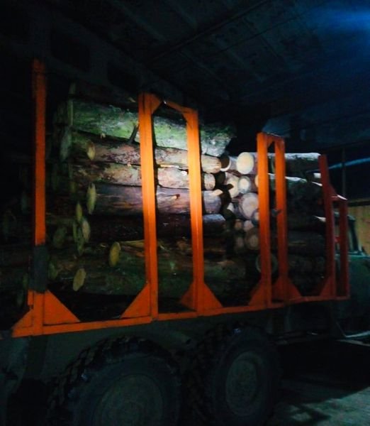 У результаті проведеного обшуку правоохоронці вилучили понад 100 соснових колод сумнівного походження, гужовий транспорт.