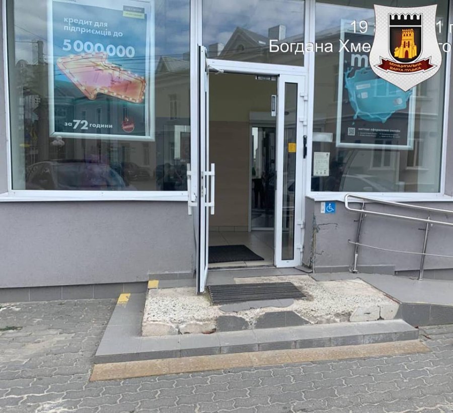 Інспектори відділу контролю за благоустроєм та санітарним станом міста неодноразово наголошували керівнику про необхідність відновлення сходів при вході у відділення, проте жодних заходів вжито не було.