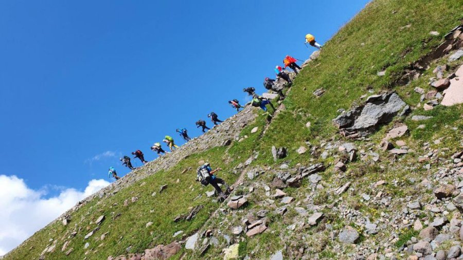 4-й день був «тренувальним» – туристи одягнули систему, обв’язались тросами та вирушили у дорогу. На висоті 4 100 метрів вони вчилися надавати допомогу та страхувати один одного.