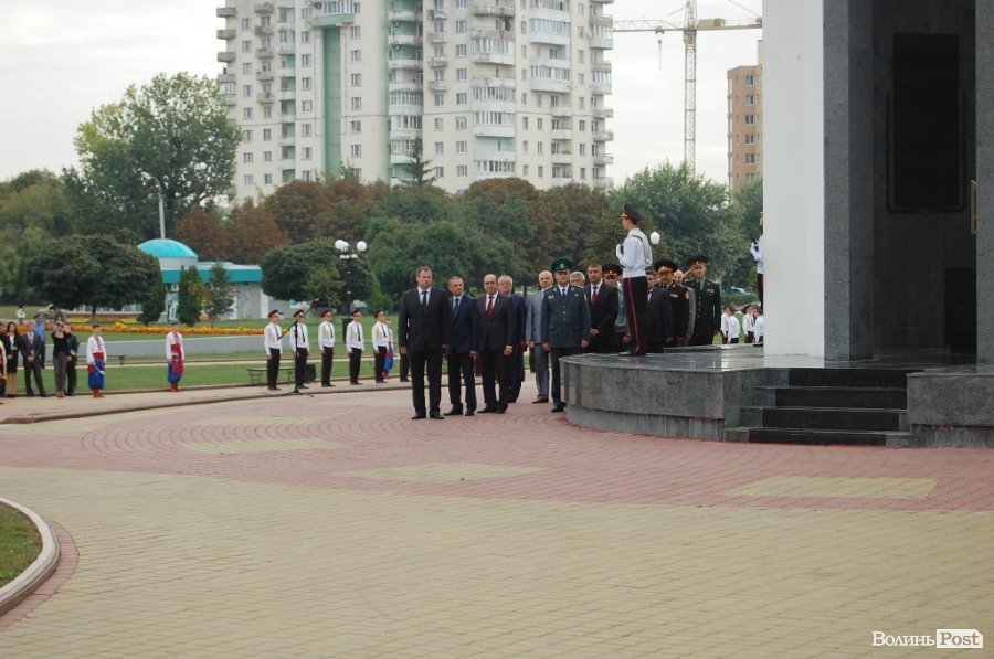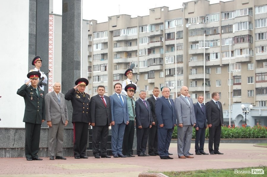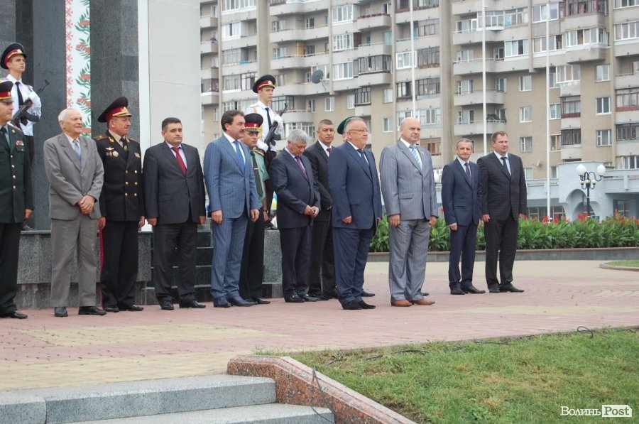 Хоча святкування мало розпочатися о 9:00, люди почали збиратися на Київському майдані ще приблизно за півгодини до урочистостей. Так, окрім Бориса Клімчука, голови Волинської облради Володимира Войтовича та декількох їхніх заступників та голів управлінь ОДА, на заході були присутні й правоохоронці та військовослужбовці, ветерани у формі ОУН-УПА.