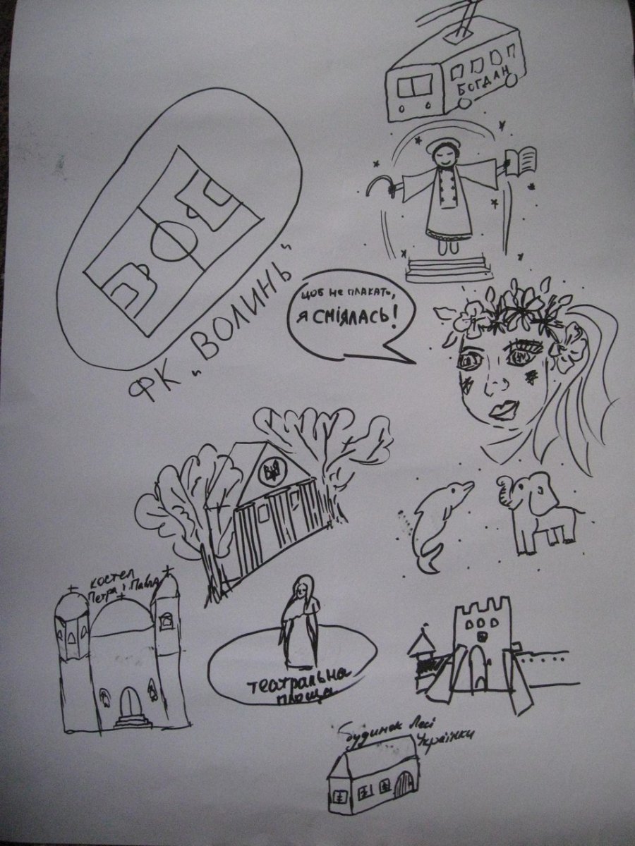 Також в цьому переліку - будинок Косачів, ФК «Волинь», костел Св. Петра і Павла та Театральний майдан. Їх спробували схематично зобразити на папері.