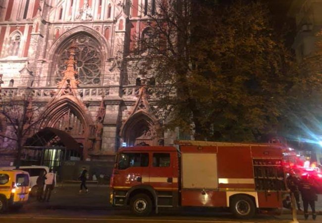 Столичні рятувальні служби ліквідовують пожежу в костелі Святого Миколая на вулиці Великій Васильківській.