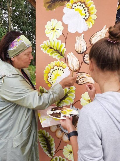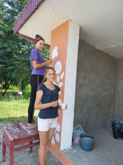 У селі Заліси, що на Ратнівщині, учасники місцевого гуртка декоративно-ужиткового мистецтва розмалювали зупинку квітами.