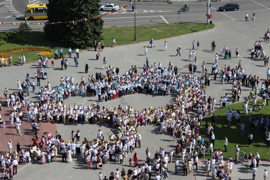 Понад 2 сотні людей зібралися в центрі Луцька у День Незалежності і вибудувалися у фігуру, що нагадувала обриси України на карті.
