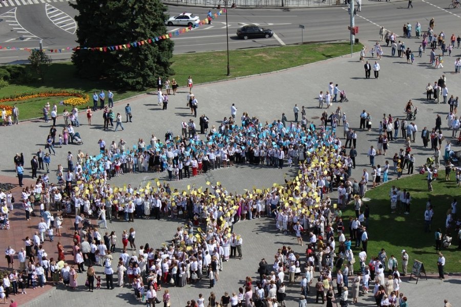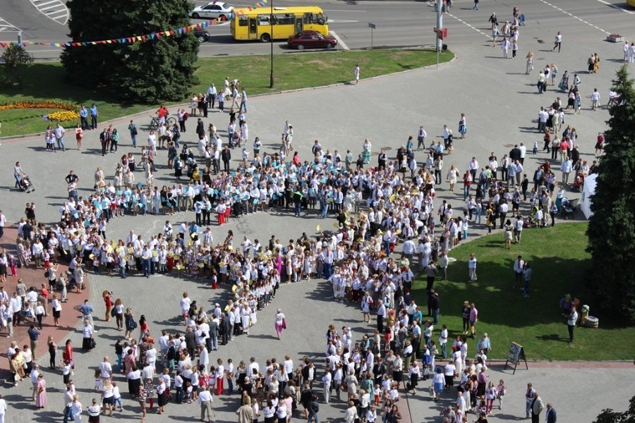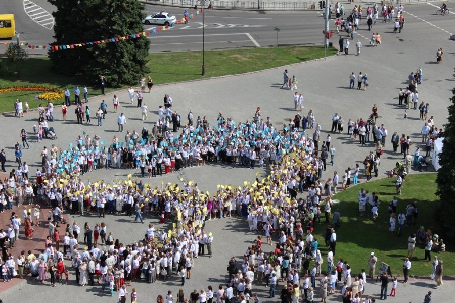 У Луцьку люди в вишиванках утворили карту України. ФОТО