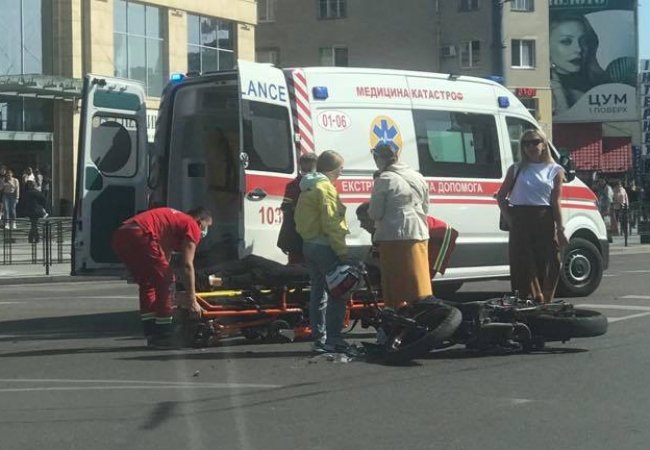 Аварія сталася біля ЦУМа. На місці працює екіпаж патрульної поліції і карета швидкої допомоги.