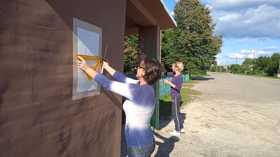 Так, до праці творча команда приступила 5 вересня. Останні штрихи домальовували вже у четвер. «Допомагали мені малювати Раїса Романюк, Іванна Савчук, Софія Гриневич. Із кресленням нас виручив Богдан Гриневич. Брала участь у цьому творчому процесі й малеча. Тож разом старалися зробити все якісно та красиво. Результатом задоволені, от тільки переживаємо, аби згодом хтось не попсував нашу творчість. А ще дуже сподіваємося, що відтепер у такому привабливому павільйоні пануватиме чистота, бо раніше тут був справжній смітник», - підсумовує Іванна Ладчук.