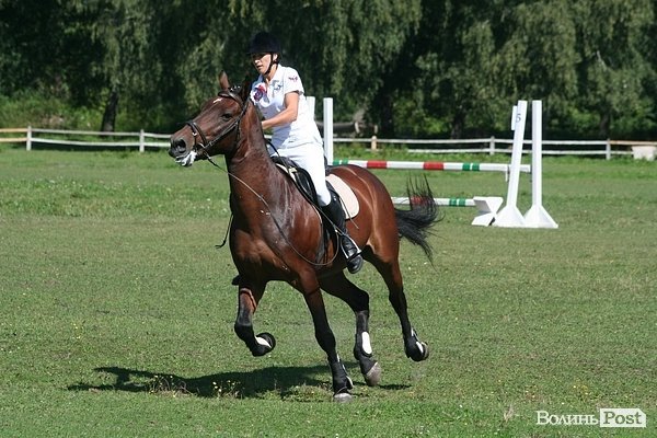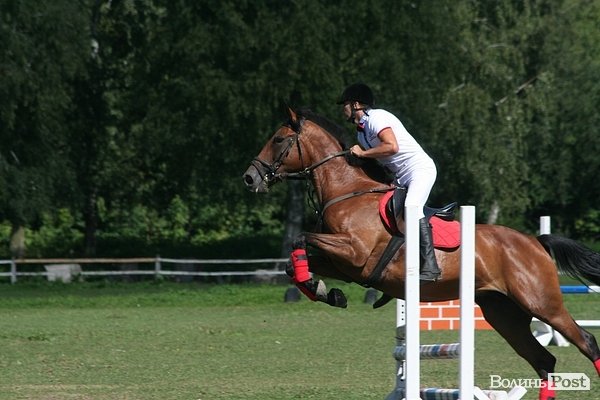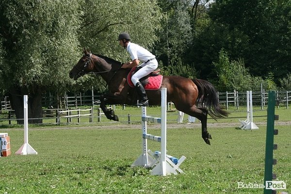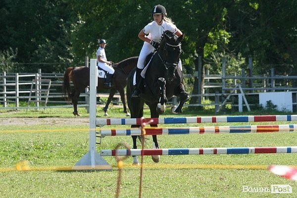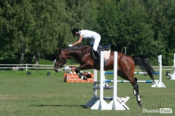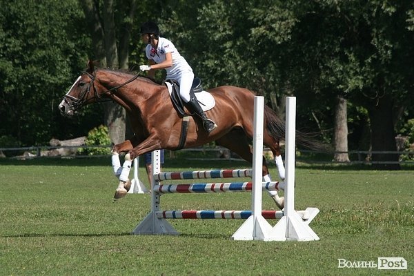 Після цього вершники змагалися у стрибках на висоту. Найвищу планку 140 сантиметрів взяла учасниця з Луцька Дарія Мельниченко.