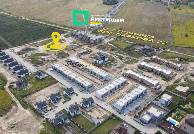 ЖК “Амстердам” будують у селі Струмівка, на виїзді із Луцька. До комплексу - менше кілометра від вулиці Об'їзної.