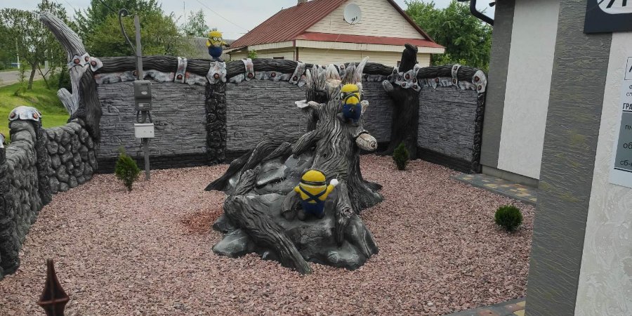 Тож спільними зусиллями митці з Гірок втілюють у реальність неймовірні казкові проєкти. Якщо це скульптура менших розмірів, то чоловіки варять із арматури каркас, обтягують його монтажною сіткою, затим накладається перший шар цементу, й тоді твориться власне краса. Якщо ж об’ємна робота, то клопоту з нею в рази більше. Зокрема, коли виготовляють на замовлення бесідки, колиби, то насамперед малюється ескіз, а далі все робиться, починаючи із фундаменту.