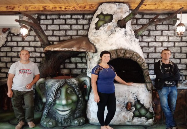 Там дуже велика територія: доріжки, скульптури, гойдалки, екологічні стежки, розсадники. Й практично працювали на кожному об’єкті, все робили у лісовій тематиці, замовники в цьому нам повністю довірилися. Також провели реставрацію двох льохів, зробивши із них містичні дракона та дядька-дуба. Облаштували і паспорт лісництва, в’їзну вивіску», – оповідає Галина Гречко.