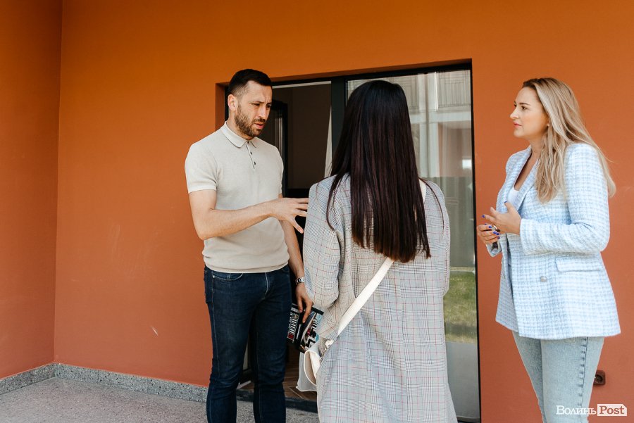 Перша заступниця генерального директора ПрАТ «Луцьксантехмонтаж №536» Ірина Патлашинська радо зустрічає перших відвідувачів презентаційного таунхаусу. Каже, результатом дуже задоволена й вже бачить схвальну реакцію людей, які приходять подивитися готове житло.