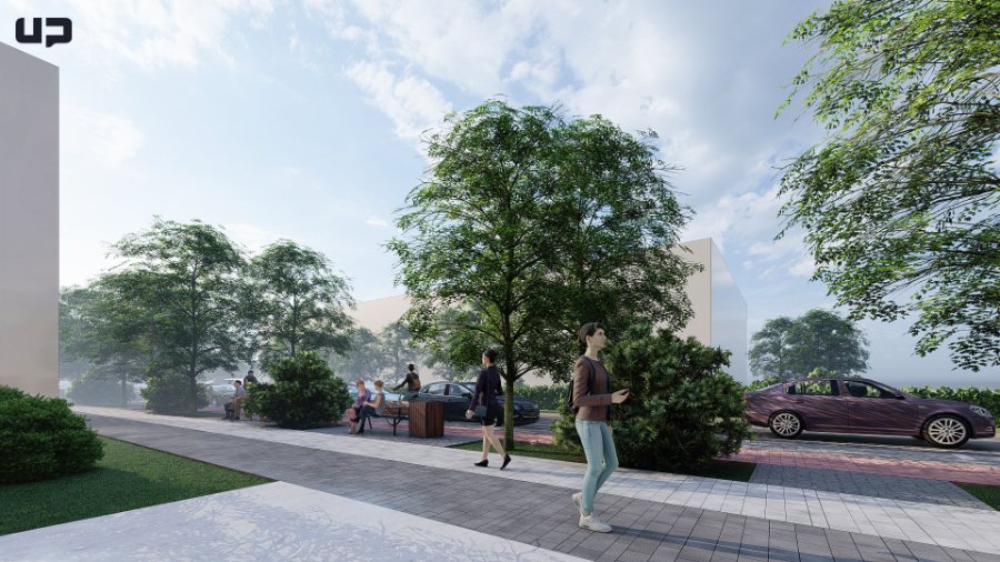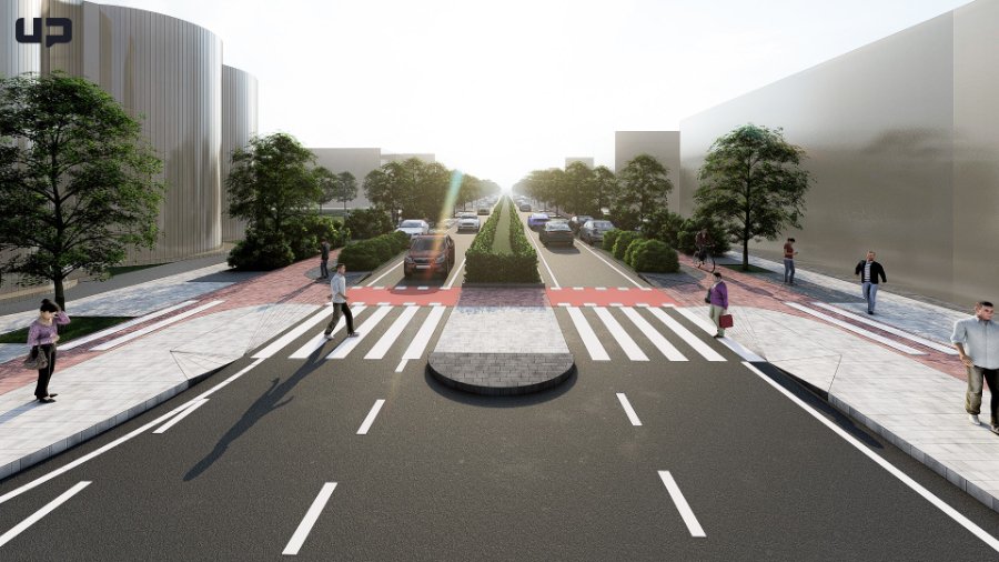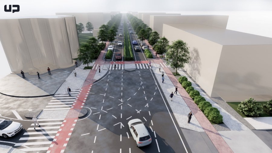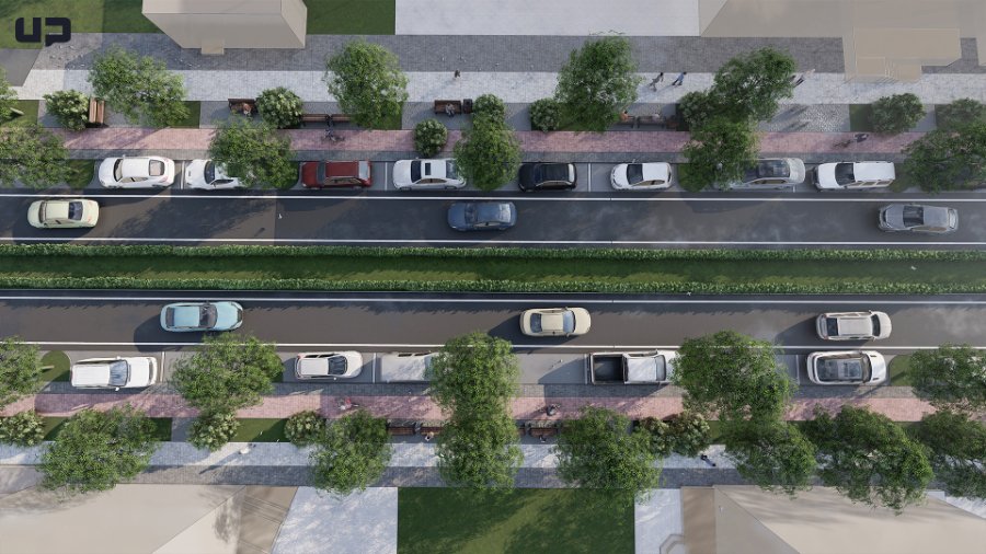 Окрім реорганізації проїзної частини, запроєктували зони для паркування, озеленення та велодоріжки по обидві сторони вулиці.