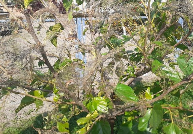"Влітку були невеликі осередки, а зараз на все перекидається. Здивований, що гусінь їсть навіть горіх. Листя горіха дає такий запах, що навіть муха не сідає, а то видно не боїться нічого", – зазначив чоловік.