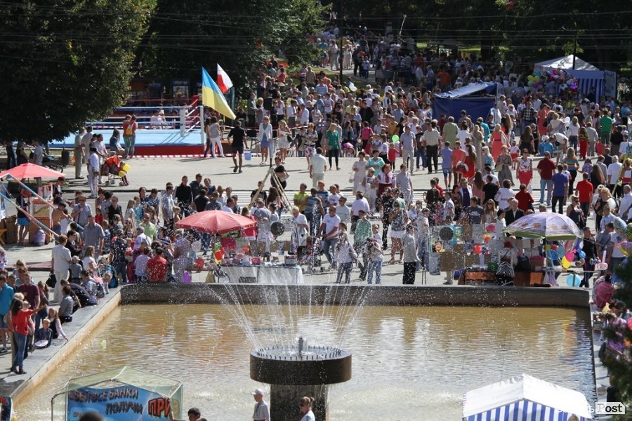 Міська влада організувала на центральній площі урочисту академію. У парку гасали на конях і милувалися квітковими композиціями.