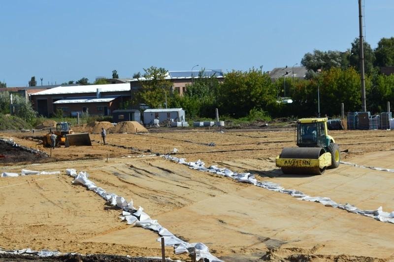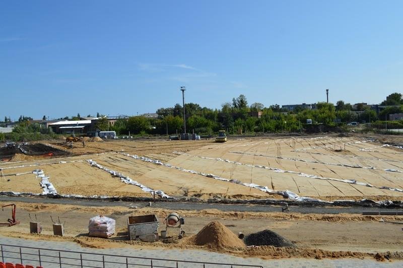 Усі роботи ведуться згідно з графіком. Наразі завершується монтаж системи автоматичного поливу футбольного поля. До кінця тижня мають встановити поребрик, який відділятиме від нього бігові доріжки.