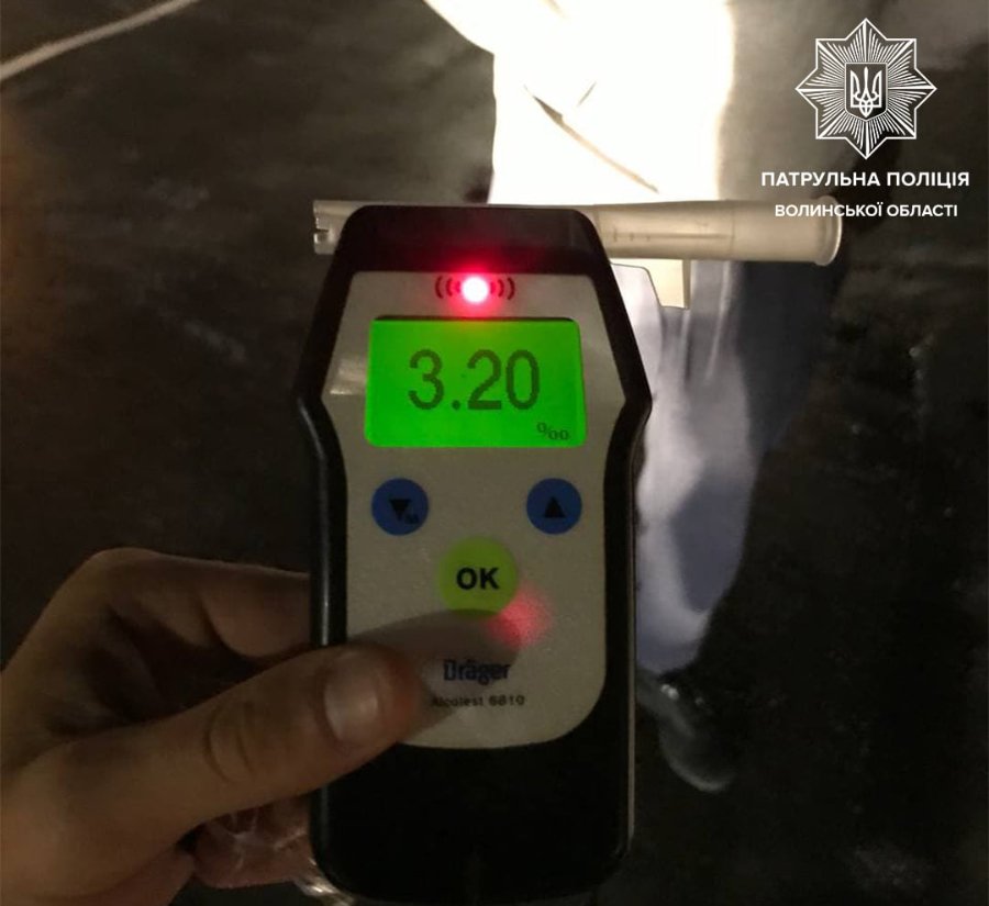 Луцькі патрульні спіймали водія, в якого у 16 разів була перевищена норма алкоголю.