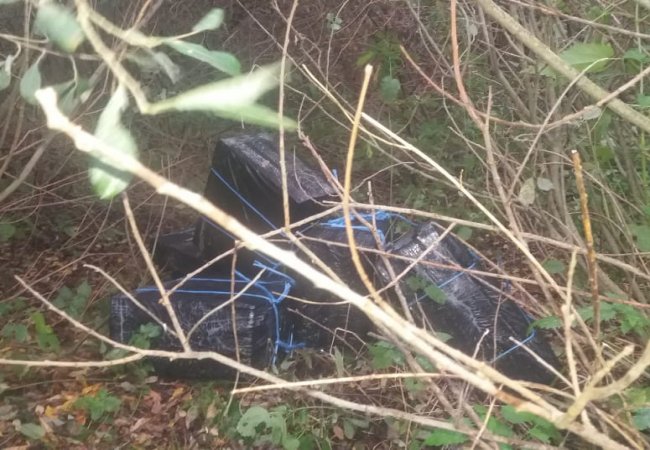 У лісі на Волині знайшли контрабандні цигарки, замасковані у кущах. ВІДЕО. ФОТО