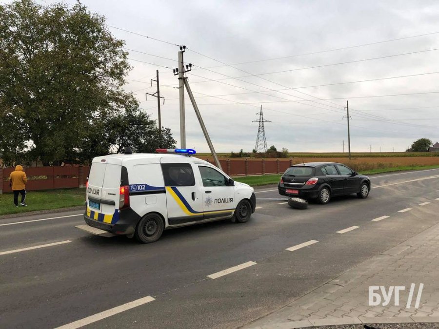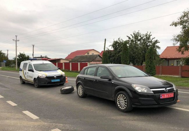 Автомобіль марки "Опель" на транзитних номерах отримав механічні пошкодження, в нього відлетіло заднє колесо. Як розповідають, його наздогнала автомобіль-лавета.