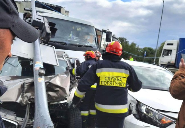 Відомо, що зіткнулися два легковика, вантажівка та мікроавтобус.