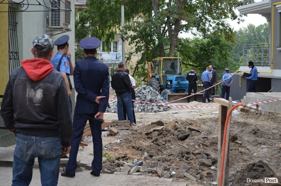 У дворі будинку на проспекті Волі, 4 у Луцьку під час земляних робіт знайшли предмет, схожий на стару бомбу чи снаряд.