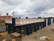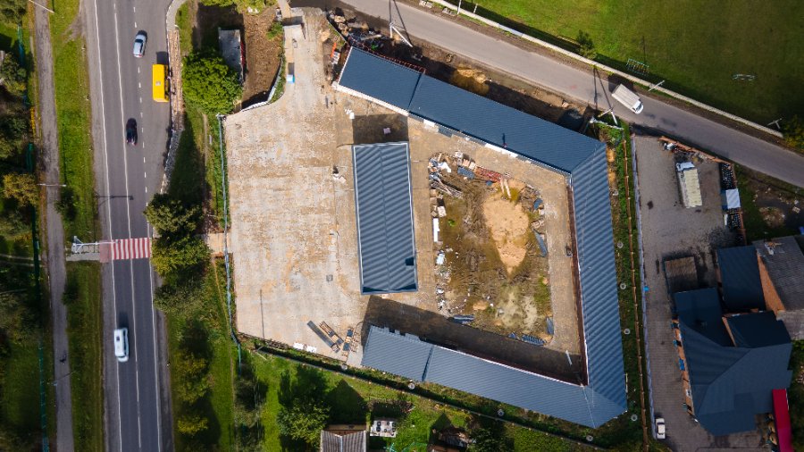 - 3 стаціонарні будівлі 282 м2, 103 м2 і 80 м2. У найбільшому приміщенні буде супермаркет SPAR, у двох інших планують кафе чи піцерію, а також аптеку.