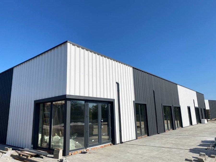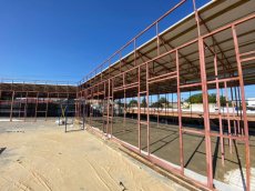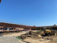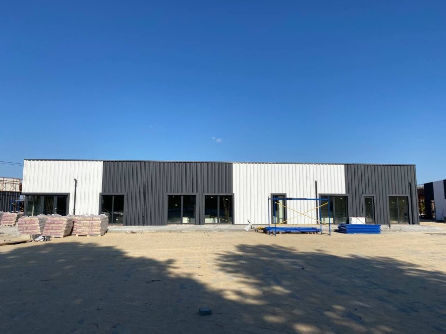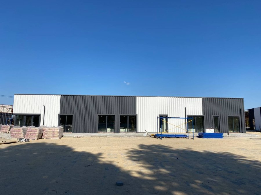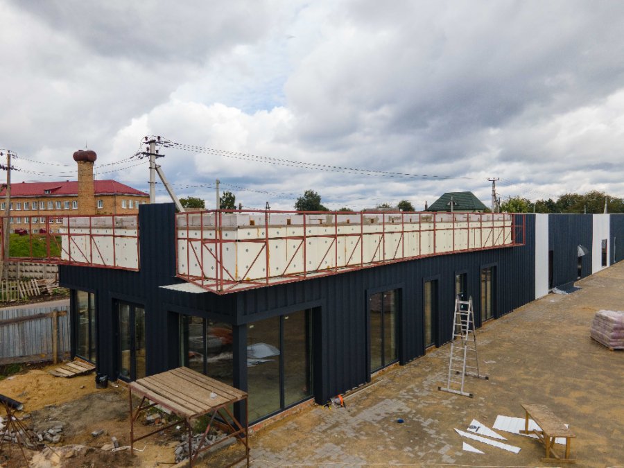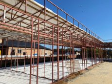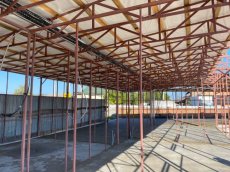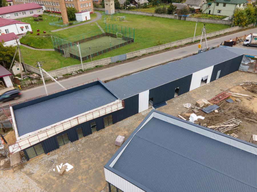 - змонтовані металеві каркаси для усіх торгових павільйонів, споруджене накриття, залита стяжка, половина фасадів обшита металопрофілем;