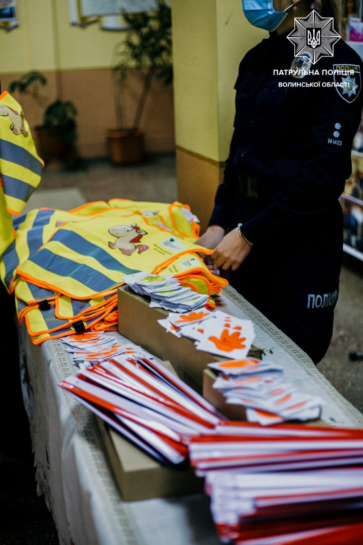 Волинські школярі отримали від патрульних та Генконсульства Польщі жилетки та флікери. ФОТО