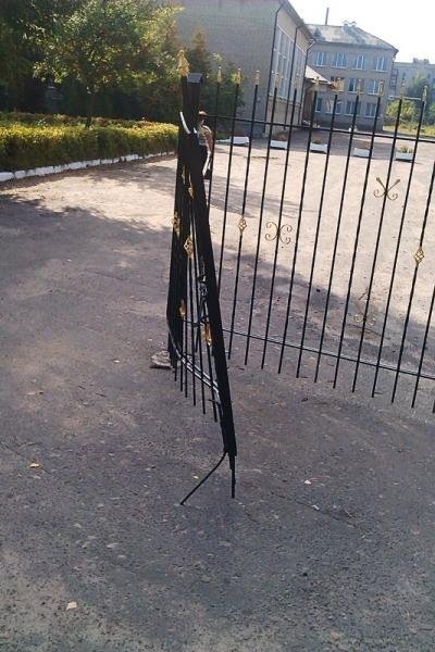 Знайшлися "добрі люди", яким це, мабуть, не дуже сподобалося. Як наслідок - металеву браму понівечили.
