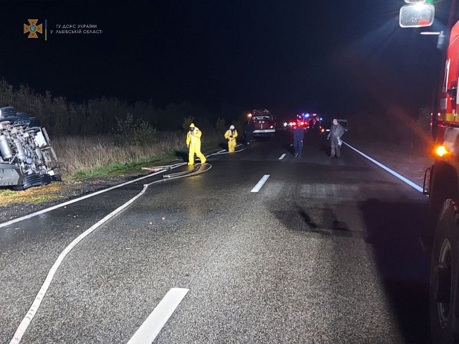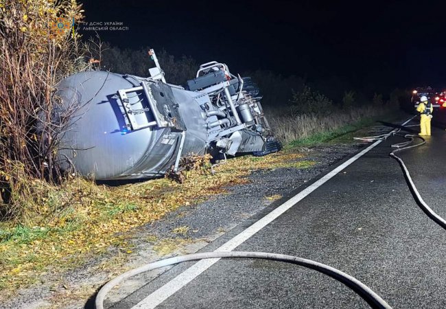 На Львівщині 5 жовтня трапилась аварія – на трасі Ковель – Жовква перекинувся бензовоз, у якому була каустична сода. Цистерна розгерметизувалась і її вміст вилився на дорогу.