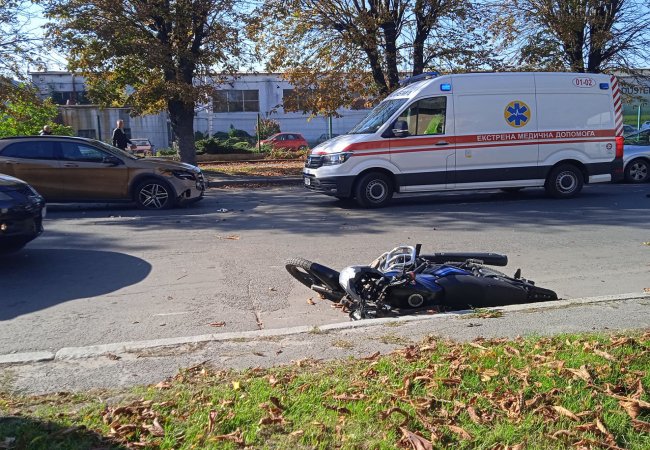Автопригода сталася сьогодні, 6 жовтня, близько 12 години. Mercedes допустив зіткнення з мотоциклістом, у якого внаслідок дорожньо-транспортної пригоди – закрита черепно-мозкова травма та перелом китиці.