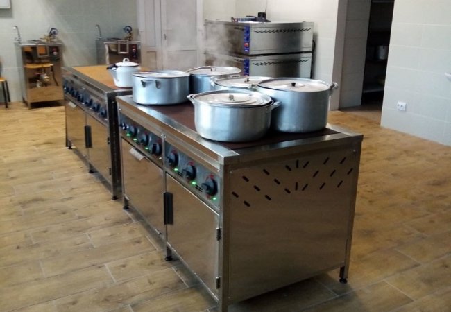 Крім того, за кошти державного бюджету в сумі 456,576 тис. грн. та співфінансування із селищного бюджету 50 тис. грн. придбано плити електричні, зонд витяжний, мийки, стелажі, котел водогрійний, шафи холодильні та інше обладнання.