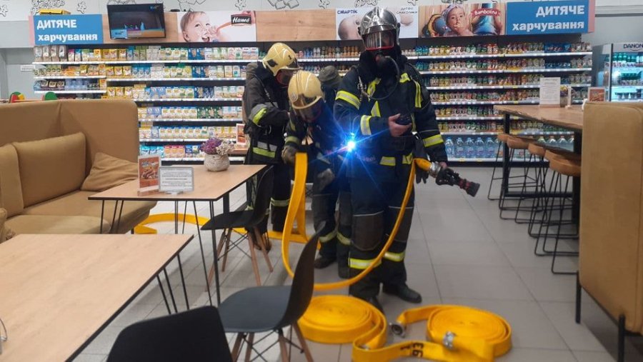 За легендою навчань у приміщенні торгового центру сталася пожежа.