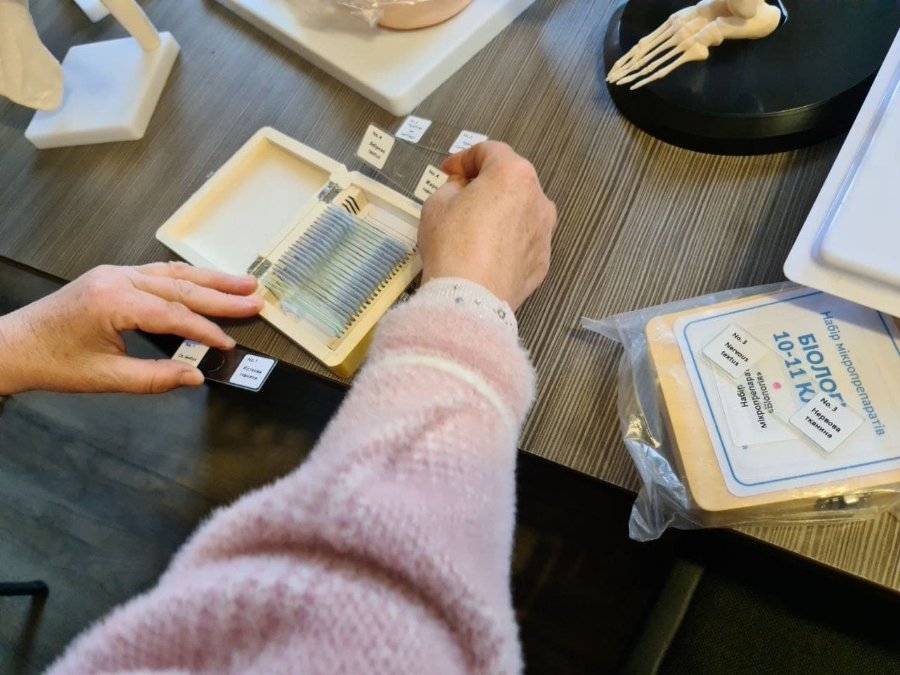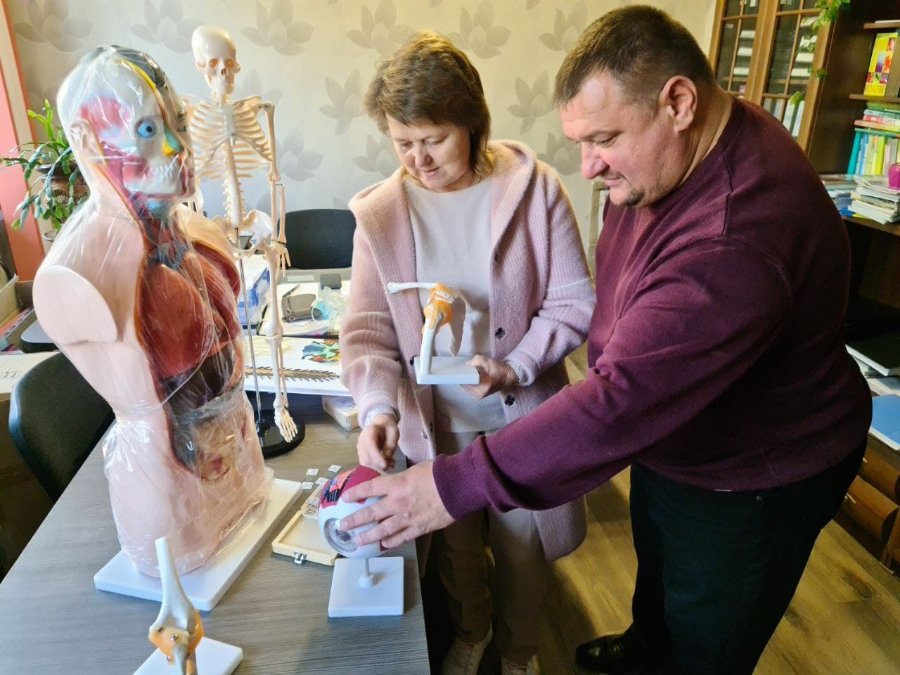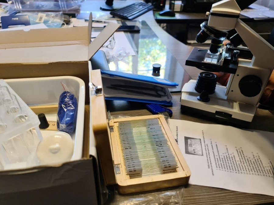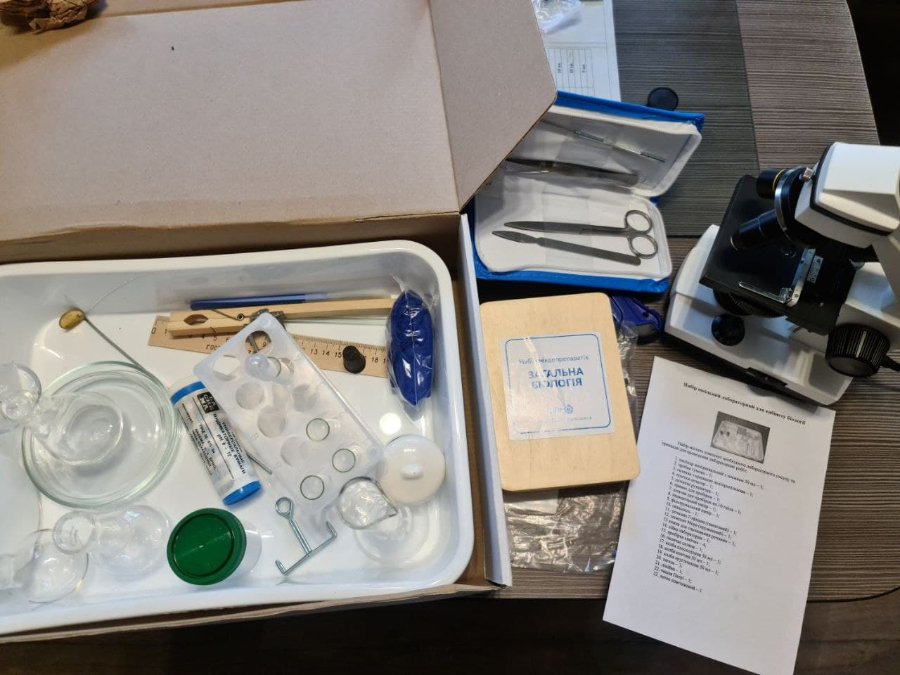 У наборах для кабінетів біології понад 30 найменувань. Тут і моделі скелетів двох розмірів, 16 шкільних мікроскопів, тренажер серцево-легеневої реанімації, набір препарувальних інструментів, тонометр, фонендоскоп, набори мікропрепаратів «Біологія», «Загальна біологія», «Анатомія», повний набір стендів для кабінету біології, модель «Торс людини», «Серце людини», «Шлунок людини», «Головний мозок людини», моделі ока, вуха, носоглотки, нирки, суглобів, моделі квіток різних видів.