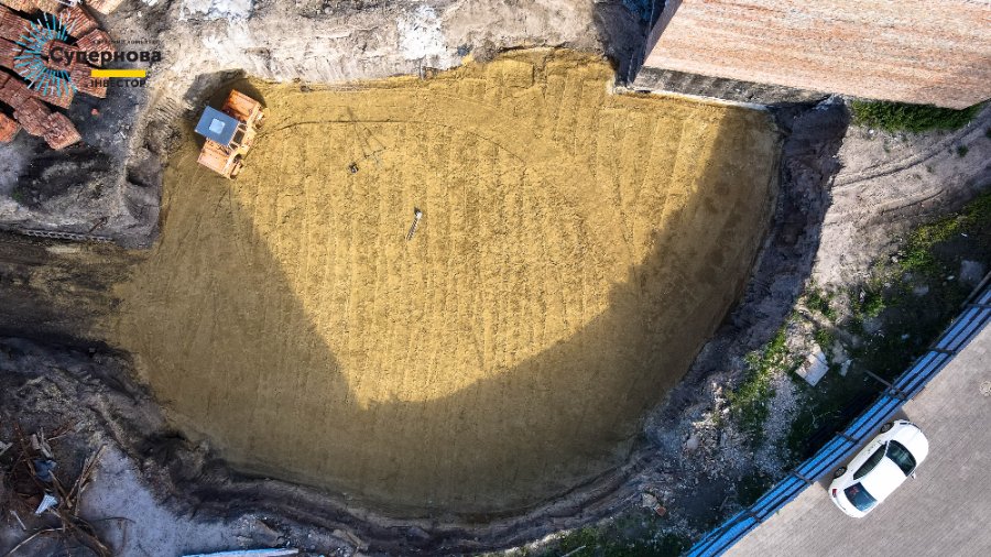 Наразі завершується спорудження монолітного каркасу у першій черзі “Амстердама” (це - перші три під’їзди). Роботи уже ведуться на верхньому поверсі.