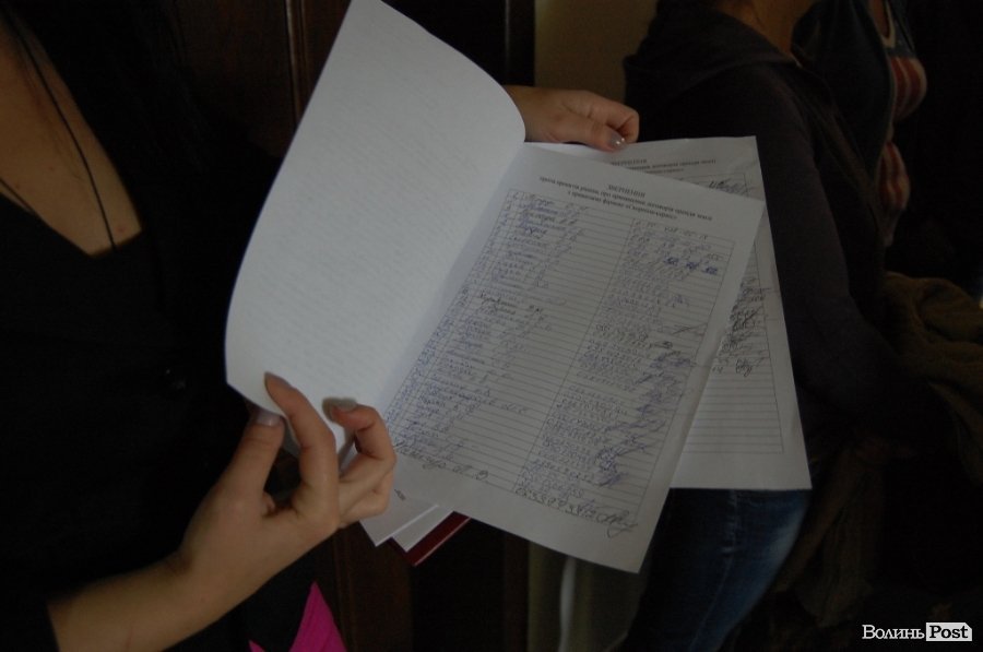 До них приєдналися й інші підприємці з Центрального ринку, які працюють на інших рядах. Близько 70 людей підписали звернення луцькому міському голові Миколі Романюку із проханням продовжити термін оренди торгових рядів «Скорпіон сервісу» до кінця 2015 року.