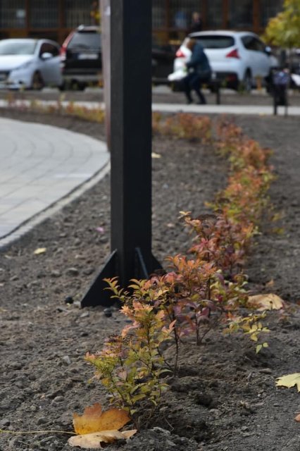 За його словами, у сквері викладена нова тротуарна плитка, облаштовано освітлення, лавки, смітники. Поруч з сквером розширено парковку. Висаджено 18 дерев (10 лип, 6 кленів, 1 катальпа, 1 сумах) та 182 кущі (спірея японська, вейгела, гортензія, горобинник, гібіскус, жимолость блискуча).