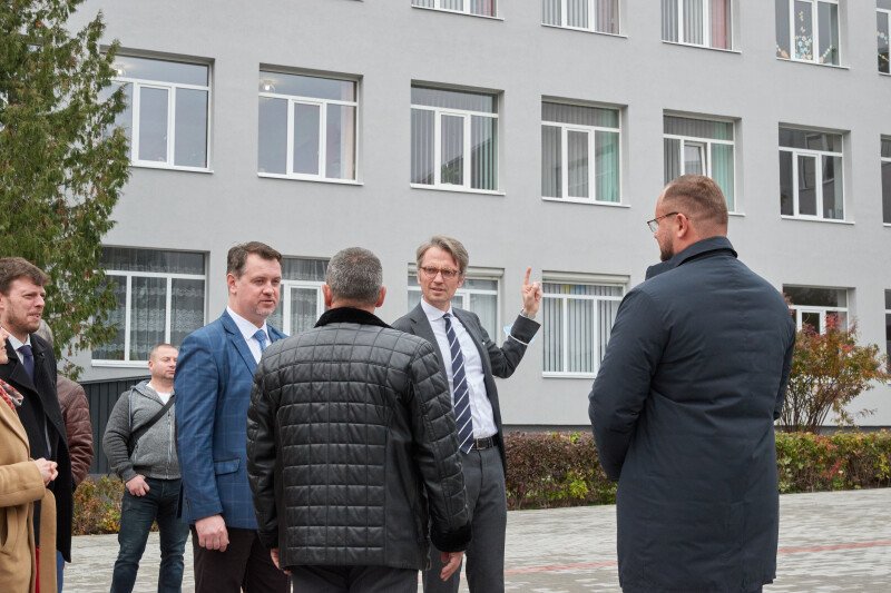Луцький міський голова Ігор Поліщук разом з інвестиційним директором NEFCO Амундом Бейтнесом, Надзвичайним та Повноважним послом Швеції в Україні Тобіасом Тибергом, Надзвичайним та Повноважним послом Норвегії в Україні Еріком Сведалом, провідним менеджером Східноєвропейського партнерства з питань енергоефективності та екології Катериною Стасюк та консультантом SWECO Гуннаром Барку оглянули результати проведених робіт у бюджетним закладах.