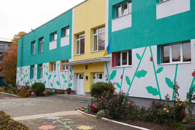 Першим об’єктом, який відвідали гості, став заклад дошкільної освіти № 32. Тут повністю утеплено дах, фасад, фундамент, замінено вікна та елементи освітлення, встановлено ІТП. Ці всі заходи дали можливість суттєво зменшити використання енергоресурсів, покращити мікроклімати усередині приміщення, адже тепер у всіх приміщеннях садочка тепло. Окрім цього, фасад будівлі має цікаве оформлення, яке подобається дітям і їх батькам, та став окрасою мікрорайону.