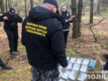 Психотропну речовину «мефедрон» двоє чоловіків заховали у потаємному місці в лісосмузі поблизу Ковельського району. Самих же наркокур’єрів поліцейські затримали напередодні у столиці. Зі схованки оперативники вилучили 21 пакет із психотропом, загальною вагою близько 11 кг.