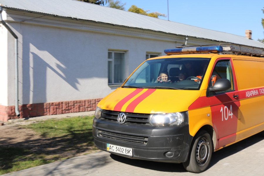 Школярі разом з фахівцями з аварійно-диспетчерської служби роздивились устаткування, яким укомплектовані автомобілі АДС та приміряли захисні каски. Школярі змогли відчути себе справжніми газовиками та покататись у службовому автомобілі.