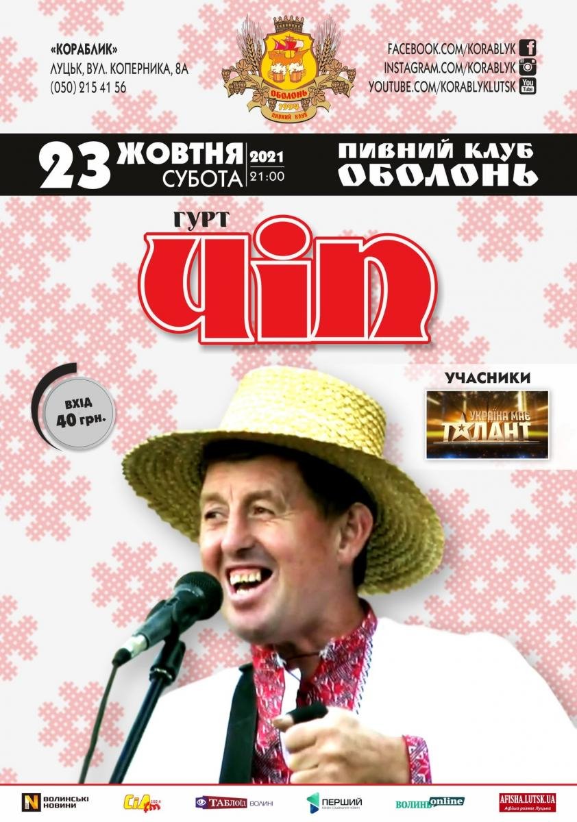 О 21 годині у пивному клубі «Оболонь» (вулиця Коперника 8а)фолькльорний ансамбль «ЧІП» відіграє свій сольний концерт. Вхід: 40 гривень.