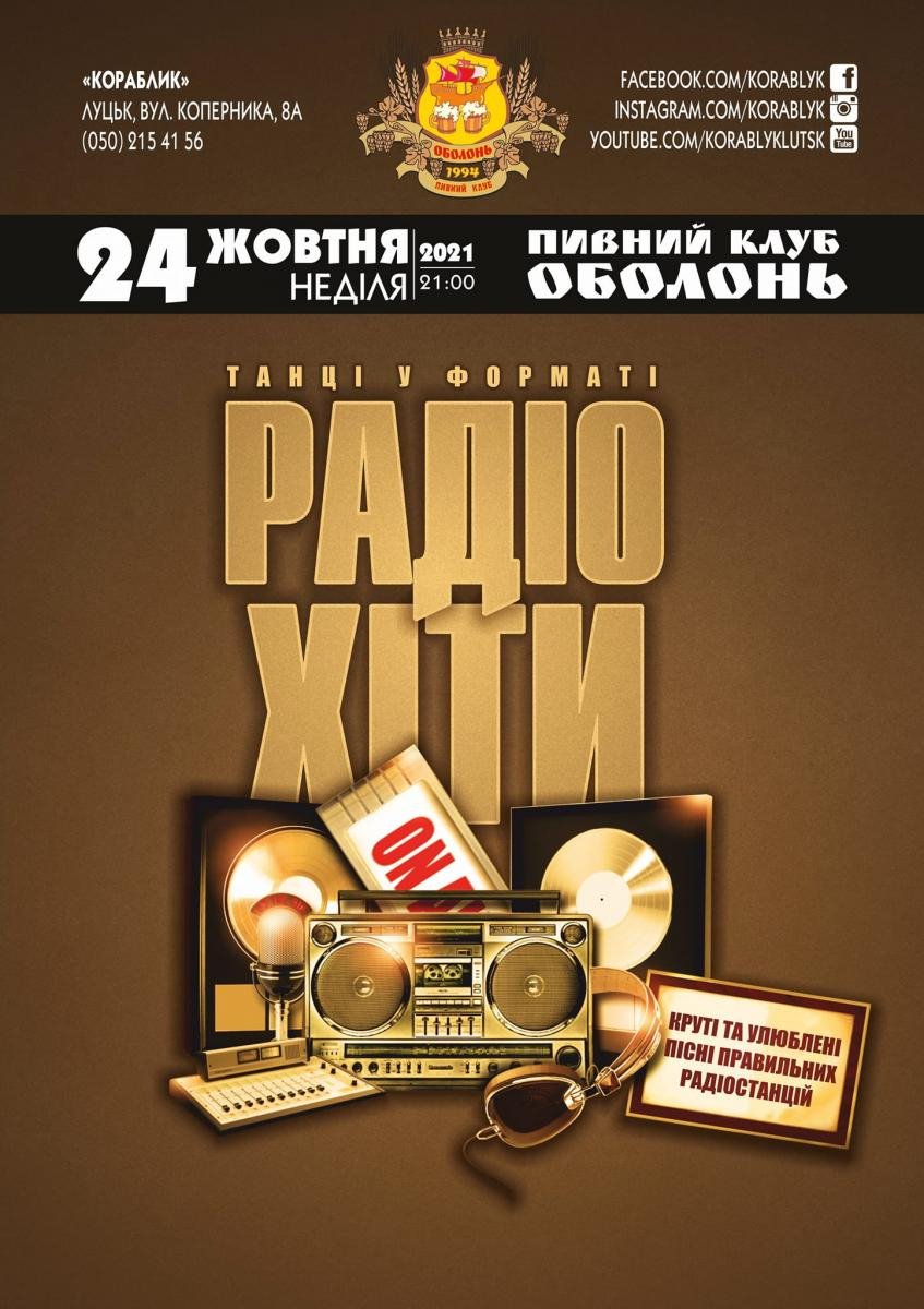 О 21 годині у пивному клубі «Оболонь» (вулиця Коперника 8а) запрошують на вечірку «РадіоХіти. Танці».