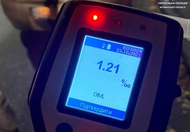 Патрульні зупинити автомобіль. За кермом перебував 26-річний чоловік, у якого виявили ознаки алкогольного сп’яніння. Він пройшов огляд на визначення стану алкогольного сп’яніння на місці зупинки транспортного засобу. Результат — 1. 21 проміле.