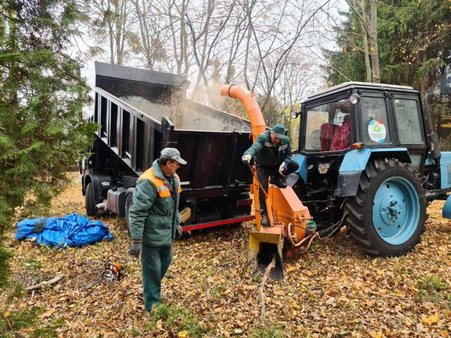 Гілки зрізаних кущів та дерев комунальники за допомогою спеціальної установки одразу подрібнюють на тирсу, якою утеплюють водонапірні башти по усій Підгайцівській громаді, аби вони не замерзали взимку.