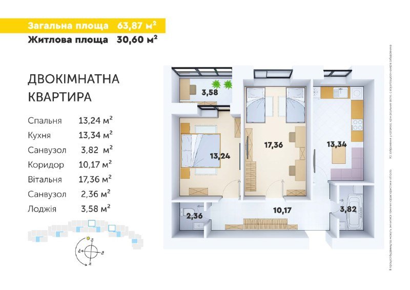 2-КІМНАТНА КВАРТИРА 63,87 м2