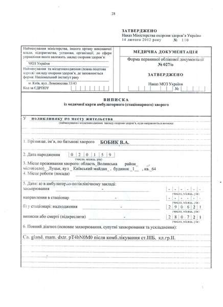 Валентина Бобик пройшла 30 курсів хіміjтерапії та 20 курсів променевої терапії. Також перенесла операцію у київському інституті раку.
