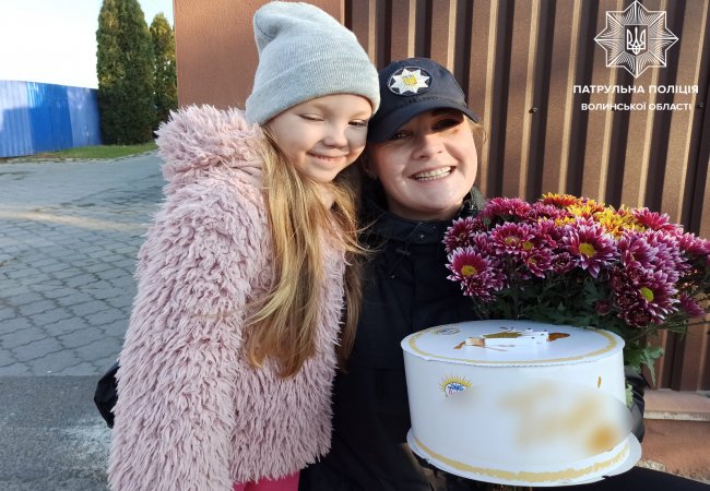У Луцьку 5-річна дівчинка зворушливо привітала патрульну з днем народження. ФОТО